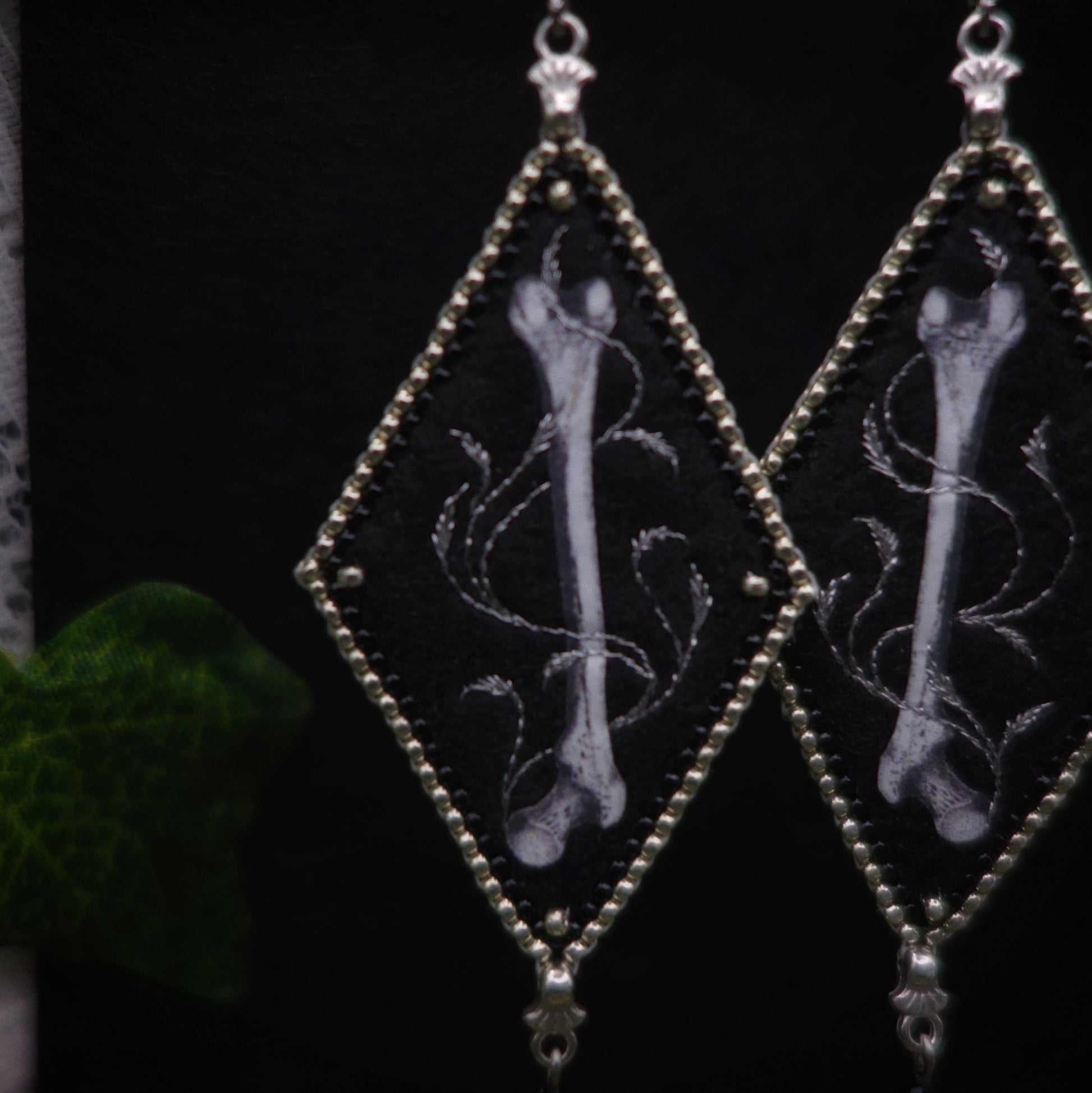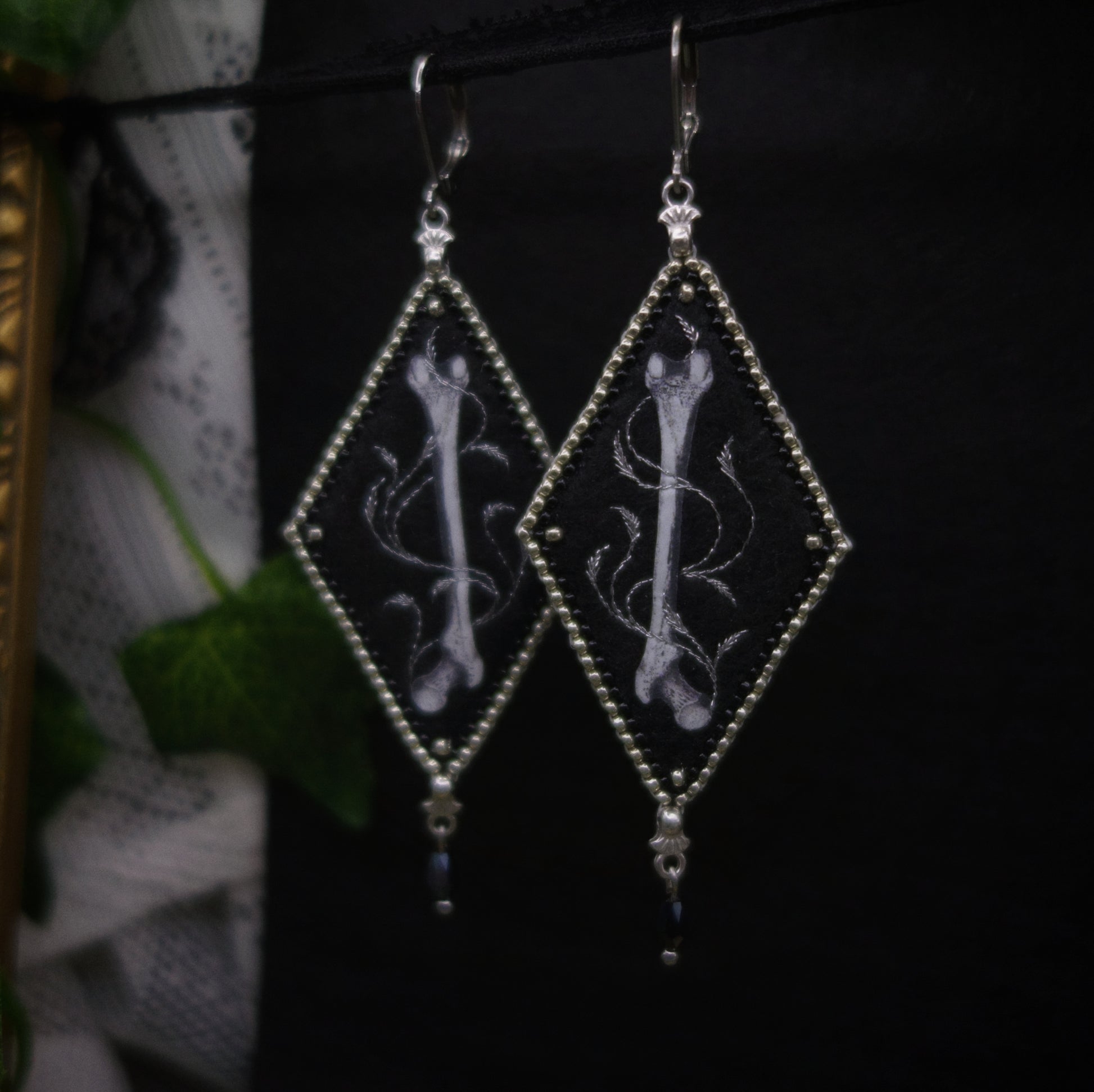 Les boucles sont brodées de fil métallisé et de perles miyuki puis serties de plusieurs rangs de perles miyuki agrémentés de perles en verre facetté.