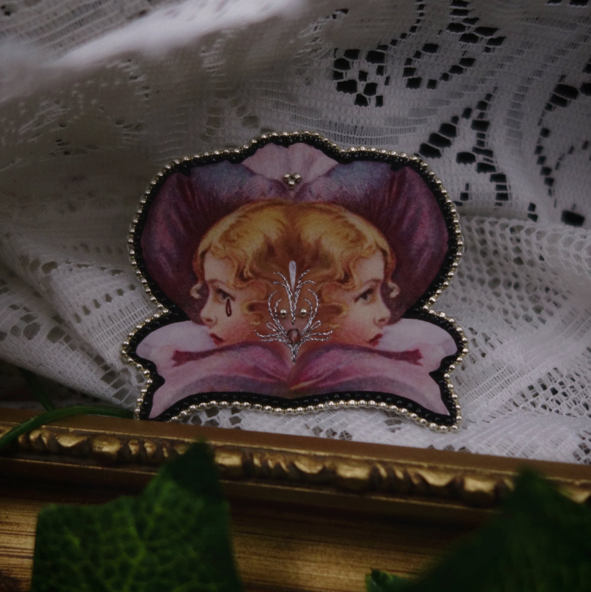 Broche double tête fleurie
