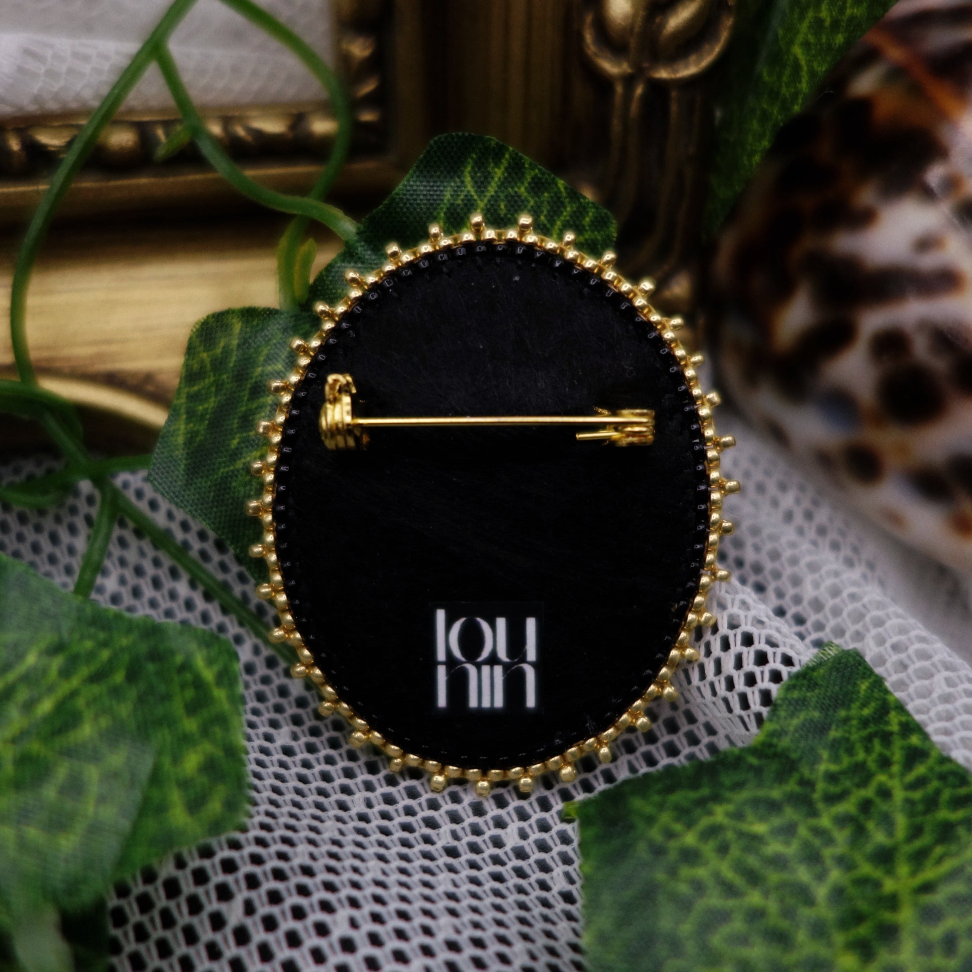 La broche est sertie de plusieurs rangs de perles miyuki.