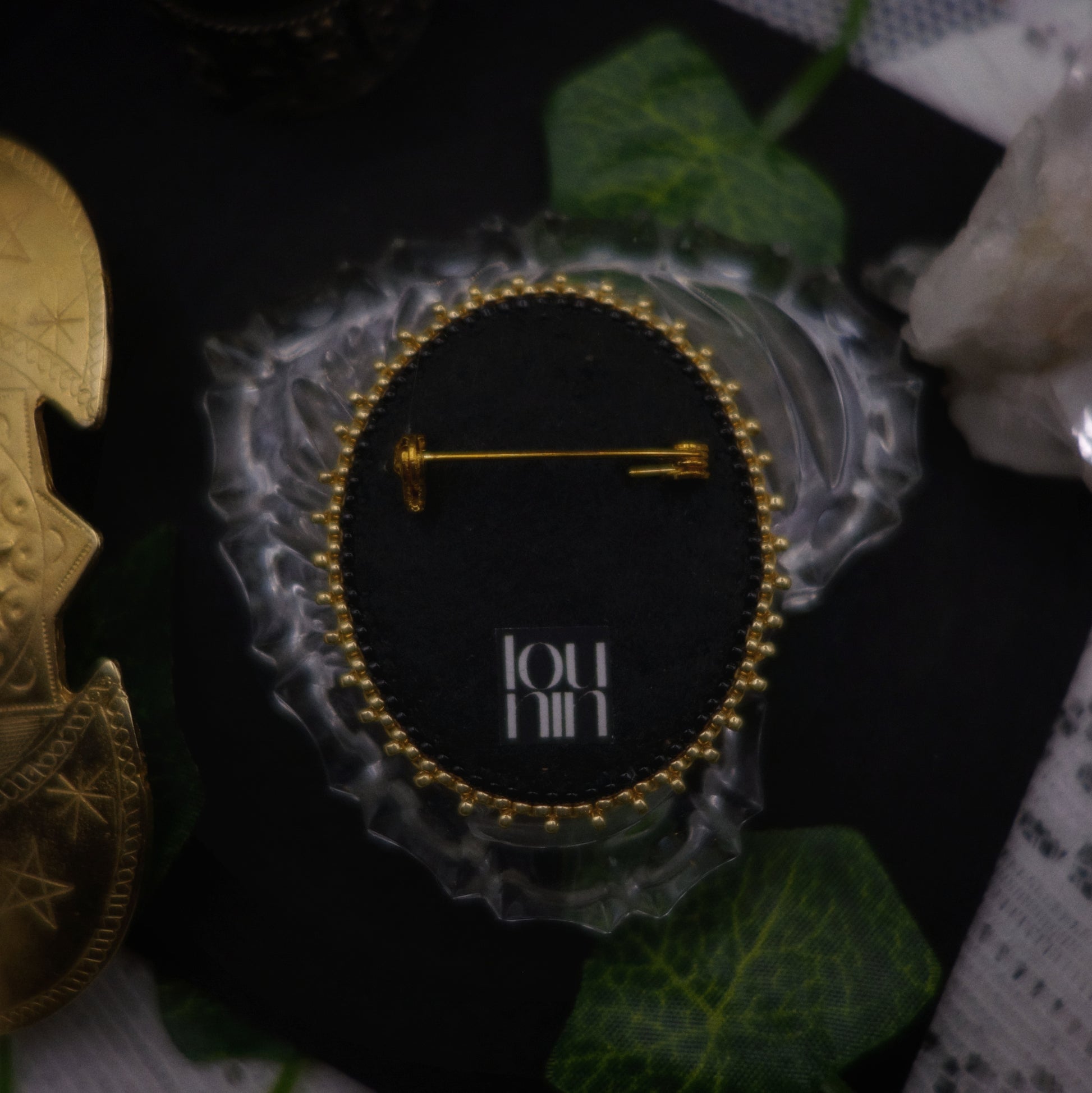 La broche est sertie de plusieurs rangs de perles miyuki.